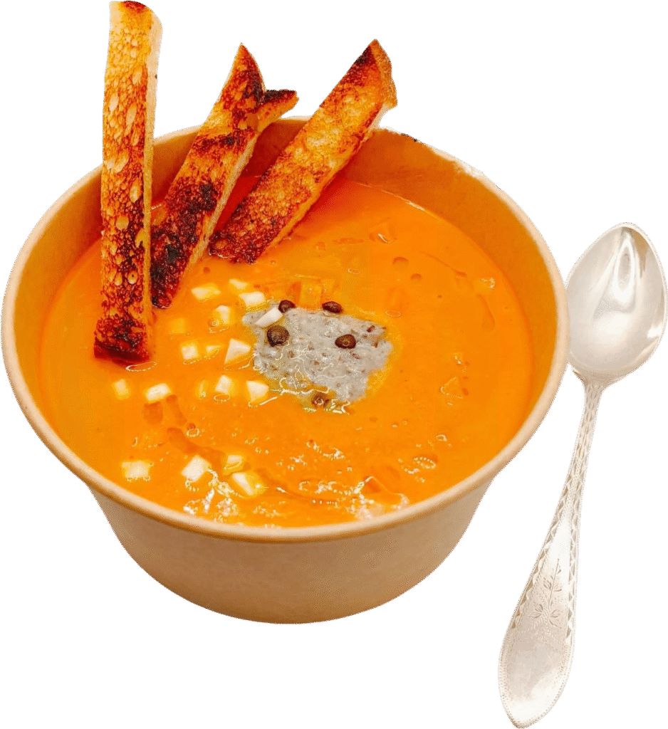 Fra tirsdag til torsdag kan du købe varm frokost. Dagens ret variere efter behov – tjek vores Facebook eller Instagram for at se den aktuelle menu.